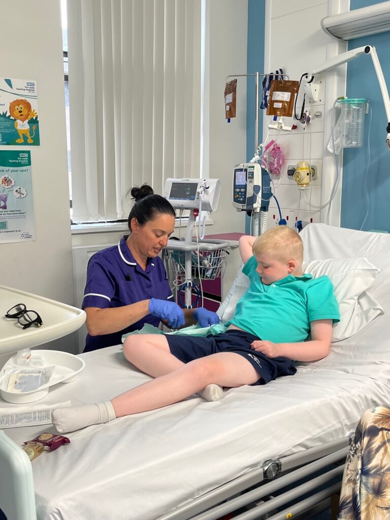 Three years ago, Austin began a trial at the Leeds Children’s Clinical Research Facility, with his family travelling over eight hours each week. Now, Austin has received over 130 infusions, he has a better understanding of his condition and knows he will lose the ability to walk, telling his mum he takes part in the trials because, ‘I want to help boys in the future to walk longer.’