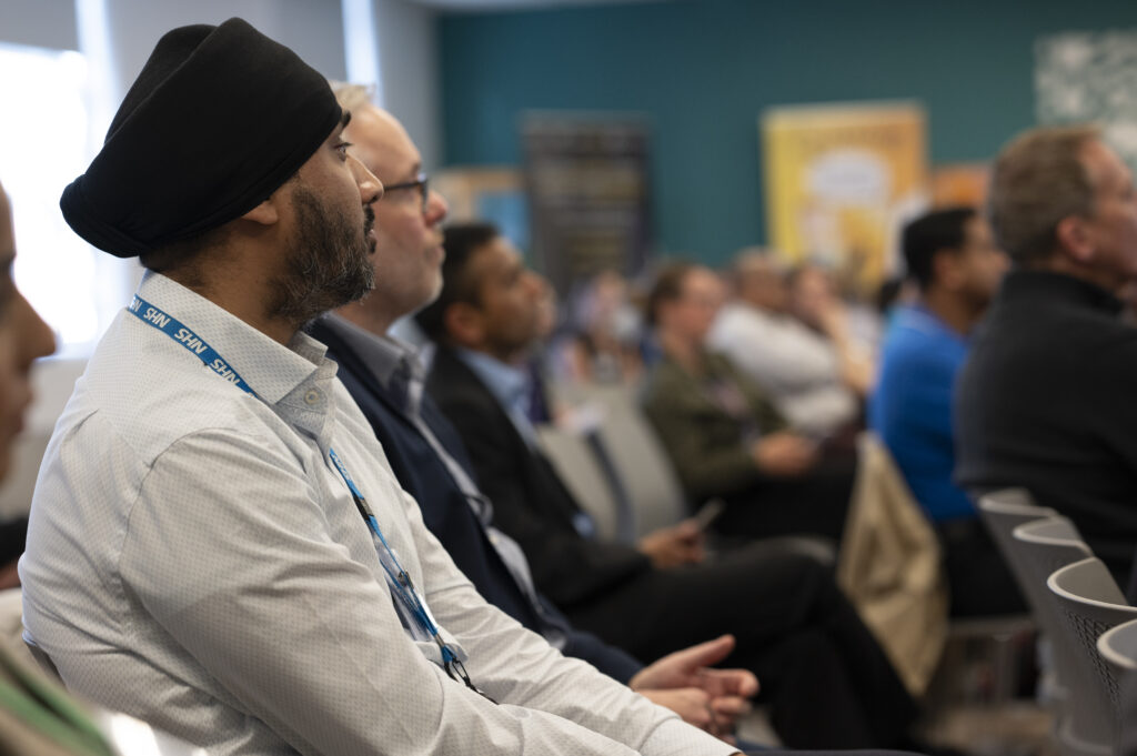 Presentations included Concentric, introduced by Dr Dafydd Loughran, which is digitising the patient consent process, and Newton’s Tree, which is running studies in Leeds and Glasgow to monitor AI in radiology reporting.