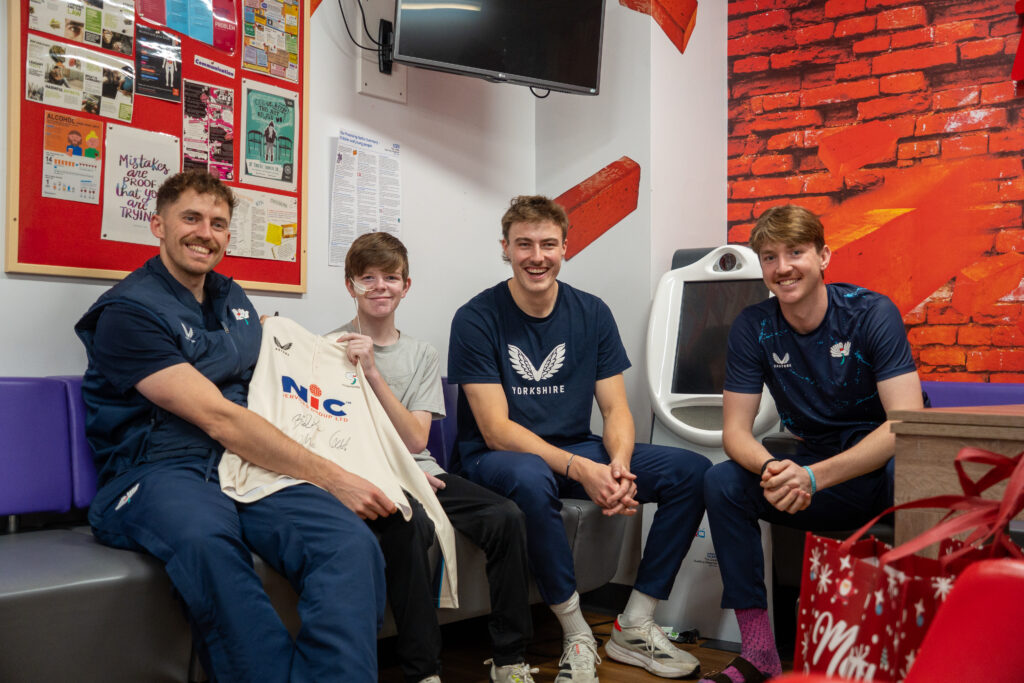 As well as spending time with patients on the wards, Tuesday’s visit included a special meeting with patient Caiden who is currently undergoing cancer treatment. Caiden is a keen bowler for Ben Coad’s home club – Studley Royal Cricket Club. Caiden’s club have thrown themselves behind Caiden and his family since his diagnosis. YCCC brought Caiden a signed shirt from YCCC and had a good chat about all things cricket!