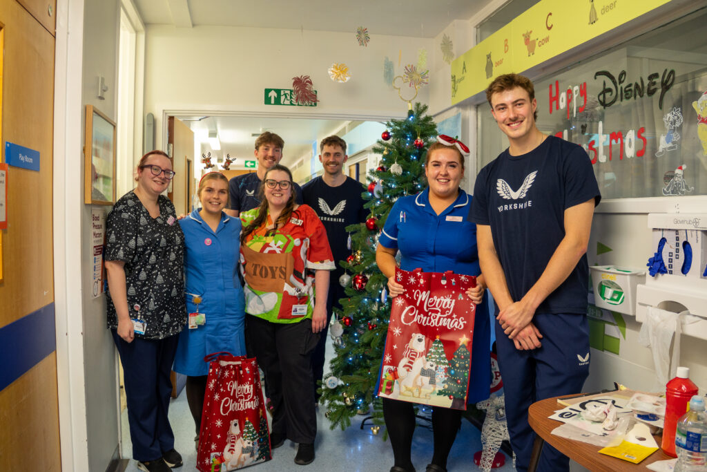 Yorkshire County Cricket Club stars Ben Coad, James Wharton and George Hill visited Leeds Children’s Hospital in December to hand out some early Christmas presents and chat to patients and families spending time in hospital this Christmas.