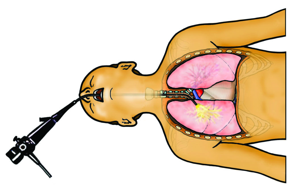 The camera and light allows us to see inside the breathing passages of the child’s lungs. There is small suction channel, which allows us take samples of secretions (lavage) or tissue (biopsy) from the lungs. The image that is seen by the camera is shown on a television screen.