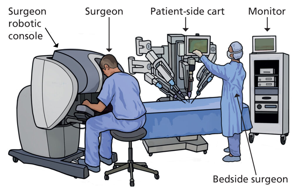 Your surgeon still performs your operation, he or she stays with you in the operating room and uses their hands to control a camera and surgical instruments for performing the procedure.