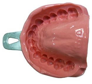 An impression is taken of the mouth before the teeth are removed. A model is made from this impression and the denture is then made on this by the dental technician.