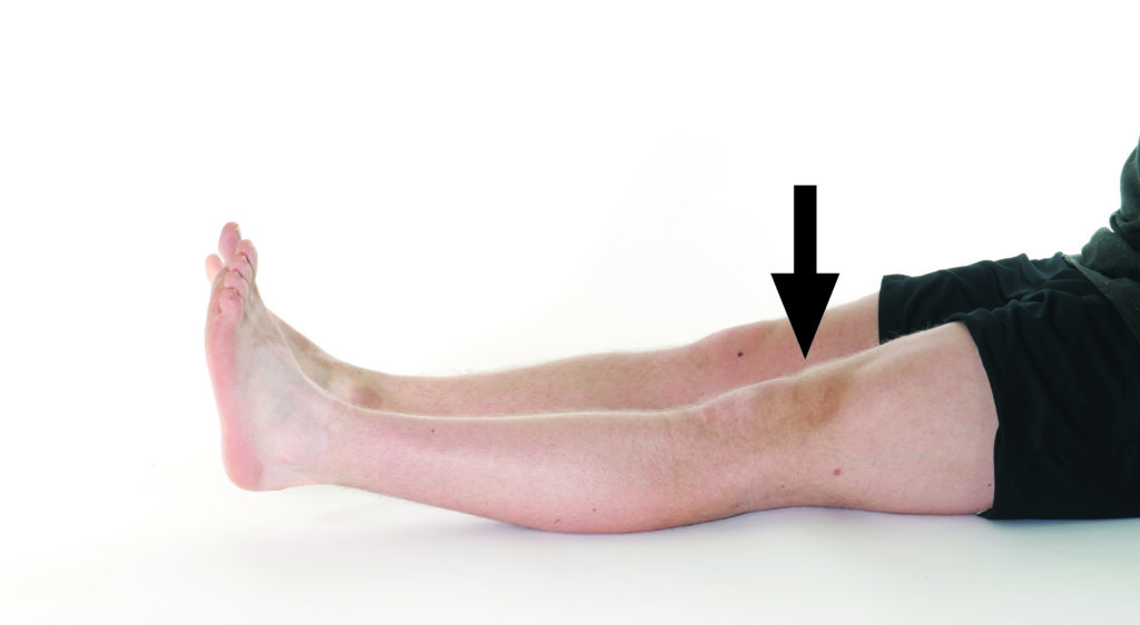 Gently tense your thigh muscle and try to flatten your knee into the supporting surface.