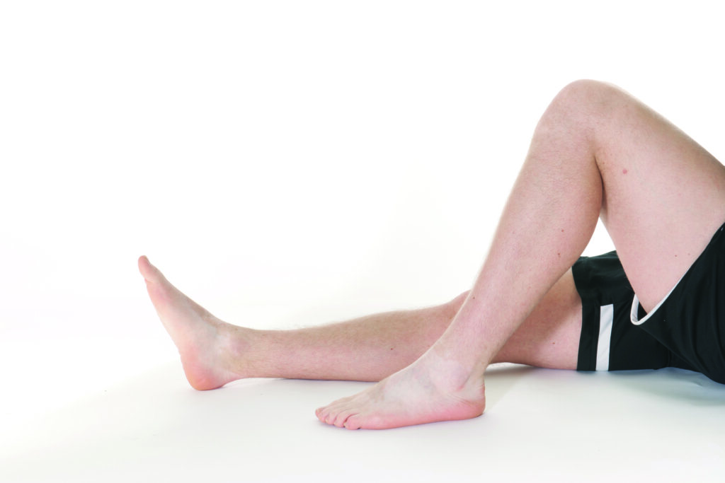 Lay on the floor or a bed with both legs straight.