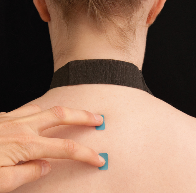 A black paper band will be placed around your neck and waist to define the area of the back being scanned.