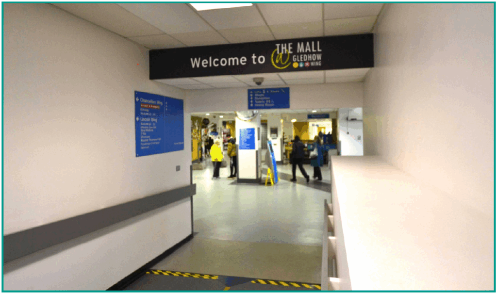 12. Continue going straight along this corridor (follow signs to Gledhow Wing or The Mall).