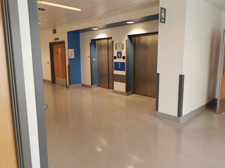 7. As you get to the end of the bridge and enter Chancellor wing, you shall see some lifts on the right. Take the lift to the ground floor.