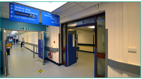 26. Follow the corridor as it turns right and continue past the ‘Leeds Way’ posters.
